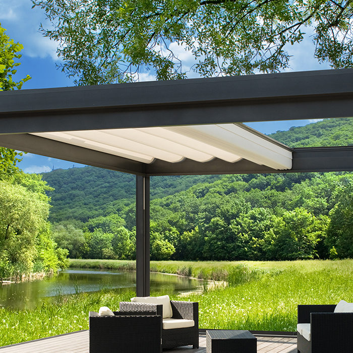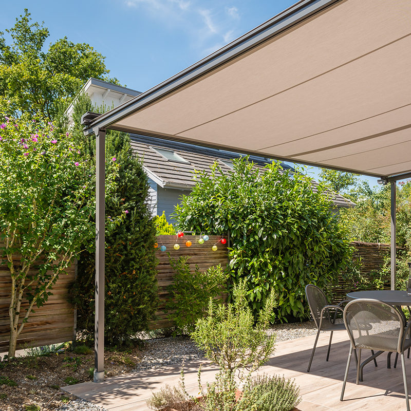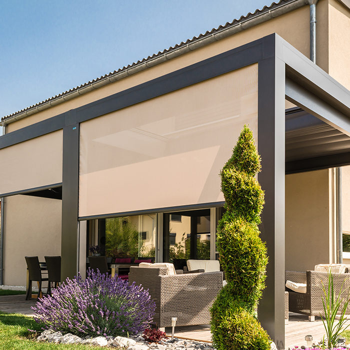 Outre la grande variété d’utilisations optionnelles, il y a également une sélection de plus de 300 tissus au choix, parmi lesquels peuvent être combinés avec de nombreuses couleurs de cadre. Qu’il s’agisse d’un auvent à cassette pour une maison individuelle, ou d’un auvent en pergola pour une salle à manger étendue dans le secteur hôtelier, une solution est toujours trouvée.