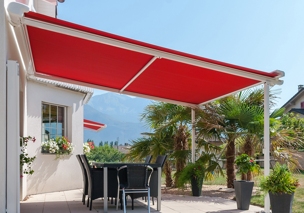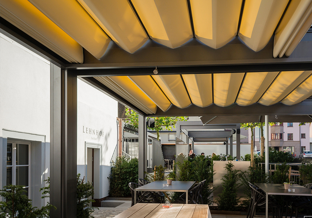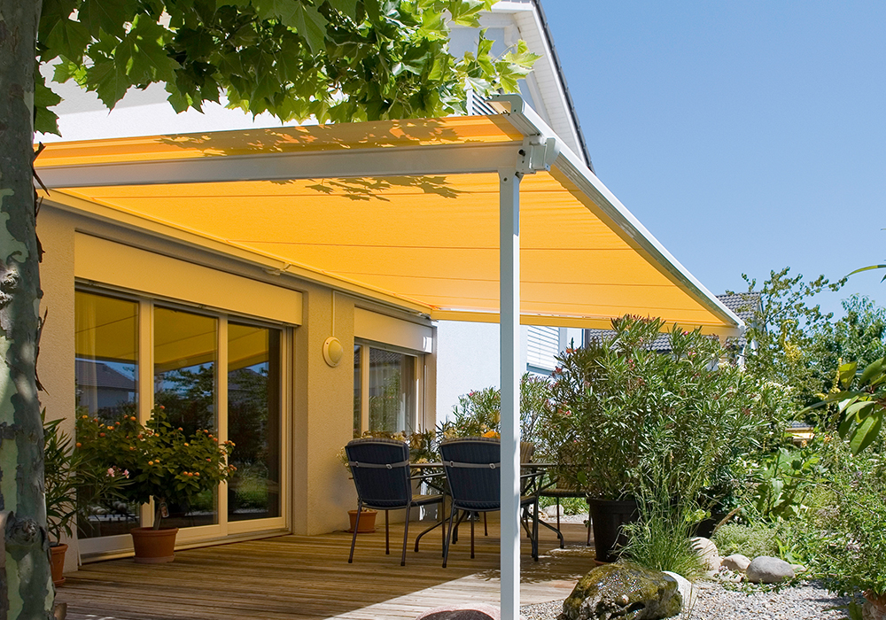 Our terrace & pavillon awnings are hardwearing and provide extra space in the open air. Terrace awnings offer a lot of benefits for fresh air fans. Frontal support makes the systems very stabile. With sufficient incline and fitted with a waterproof cover they not only provide shade but are also ideal for use in the rain. No matter whether the sun is shining or rain is falling, this system is your best protection in any weather. There are a number of product solutions to choose from depending on the particular application, desired dimensions and aesthetic appeal, even free-standing stylish pavilions.